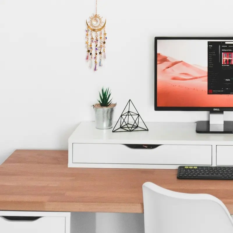 🌈 Rainbow Maker : L'attrape-soleil est doté d'un cadre en métal brillant avec des motifs de soleil, de lune et d'étoiles. Des cristaux artificiels et des pendentifs captent la lumière du soleil, créant un effet d'ombre et de lumière onirique. Son design unique, son savoir-faire raffiné et son fort caractère décoratif en font une œuvre d'art captivante.