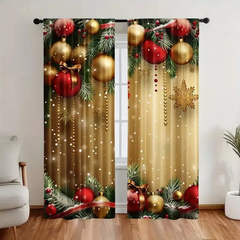 🔥 50% DE RÉDUCTION ! ✨ Lot de 2 Rideaux de Noël - Motifs Festifs, Installation Facile sur Tringle Standard, Entretien en Machine Simple 🎄🏠